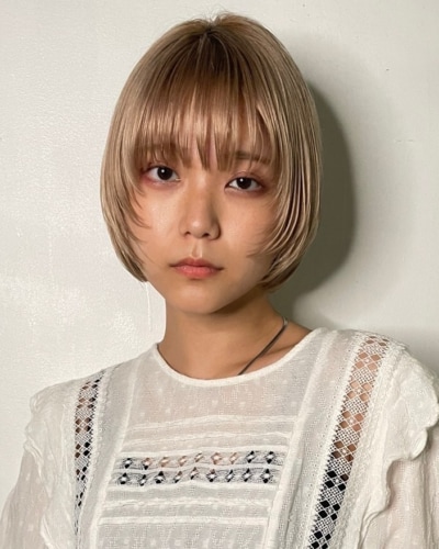 ハイトーンカラーで、キュートさの中にモード感をプラスしたレイヤーボブもおすすめ。