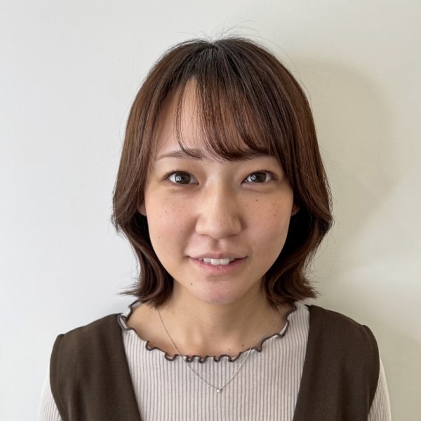 前髪は自然に流すことでフレッシュさんの爽やかさを出しています。カラーは明るく自然な印象になるようにアッシュベージュにしました。