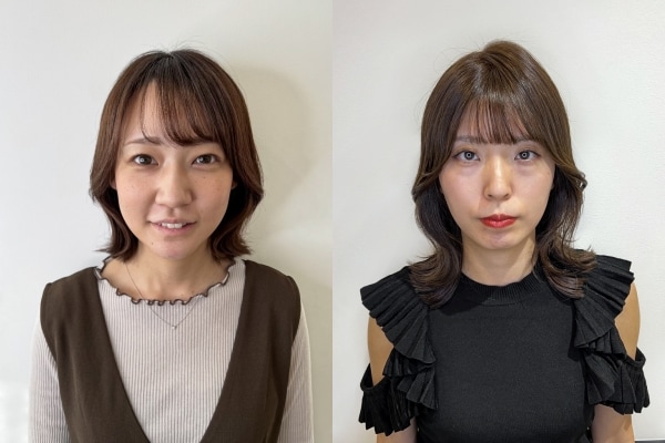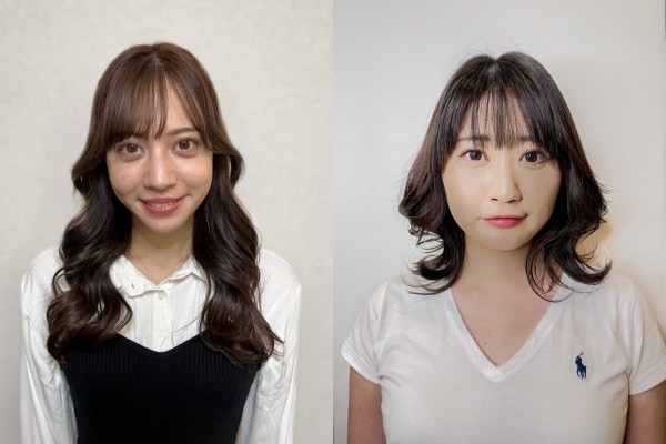 - 似合う前髪:前髪ありの場合はカールをつけず横に流す、大人っぽくしたい場合は前髪なしもOK