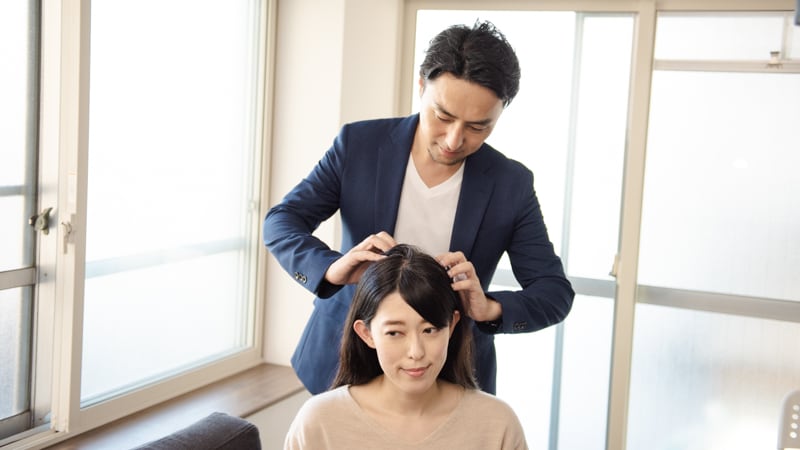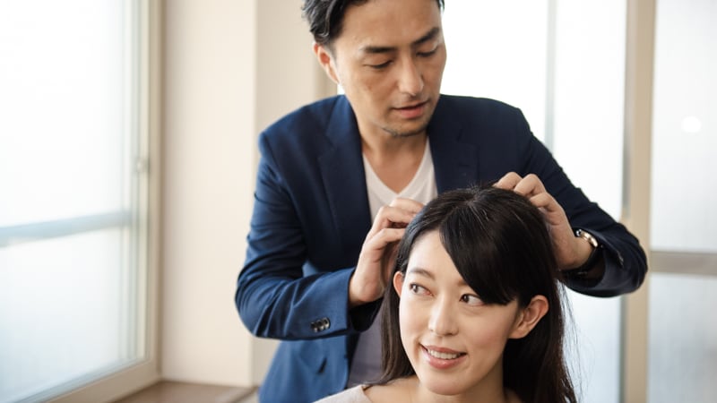 さすが!頭皮を押さえる指付きもジェントルです。どんどん数えてくださいね。