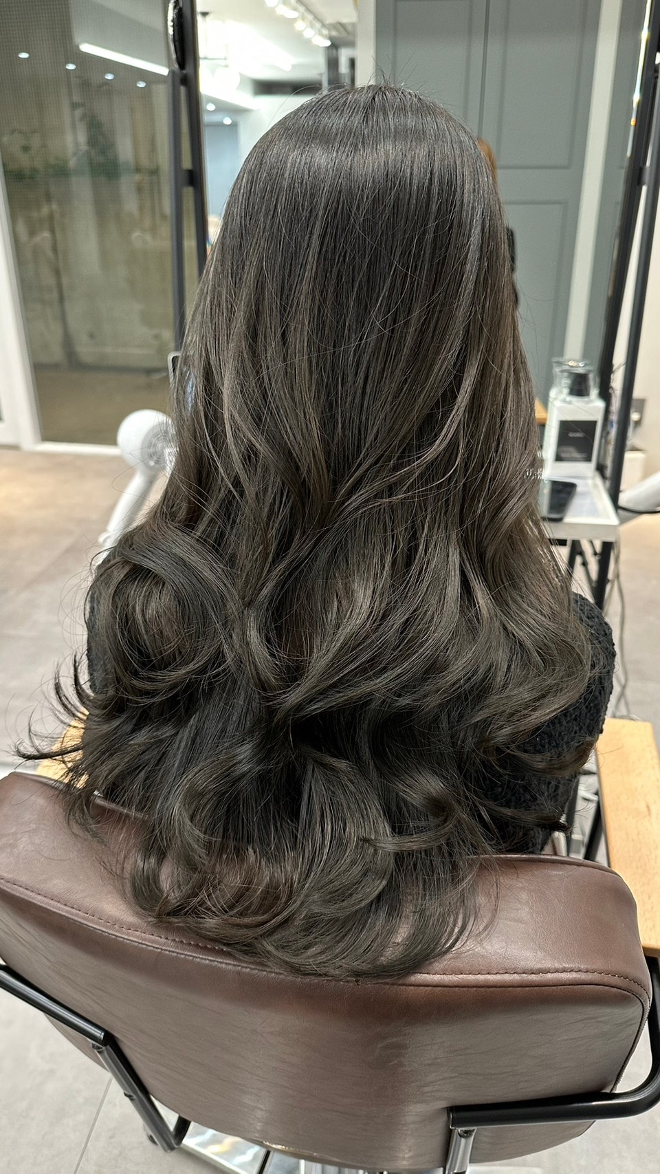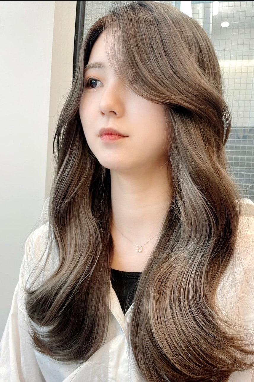 ブルベさんに特に似合いやすいグレージュカラー。インナーカラーを入れて外と内側どちらもグレージュにしても相性バツグン!大きめにカールを作ることで立体感とツヤ感をだすことができますよ。