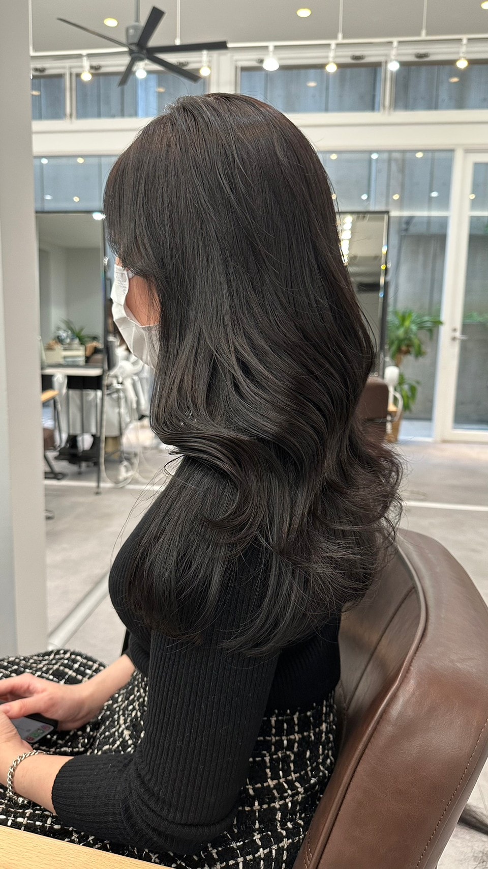 韓国ヘアブームと共に人気が出てきているネイビーブラック。クールな印象のブルベ冬タイプにぴったりです。室内でみるとほぼ黒っぽいですが光に当たると艶感たっぷり、ほんのりネイビーが感じられクール可愛い印象に。