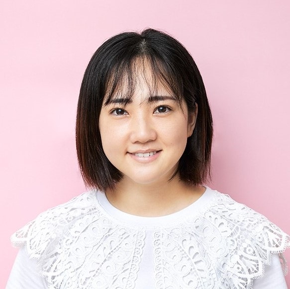 ――前髪を切り終わった状態。サイドの髪を耳にかけても顔が大きくみえず、小顔効果抜群!