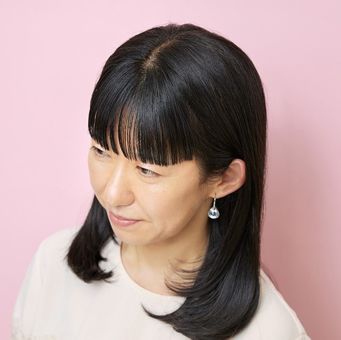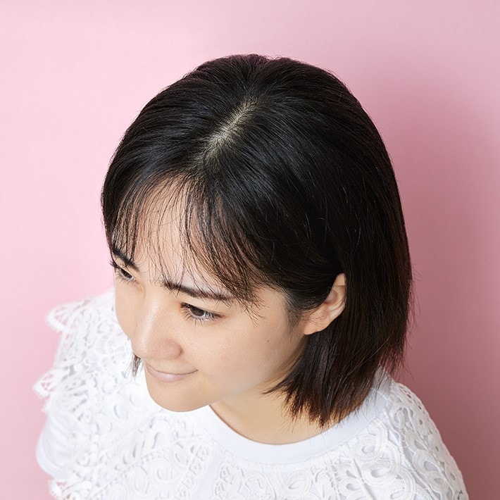 ——ストンときれいに整った前髪&重厚感のある毛先で美シルエットに! トリートメント効果でツヤはもちろん、くせによる立ち上がりもおさまって丸みのある頭頂部に。