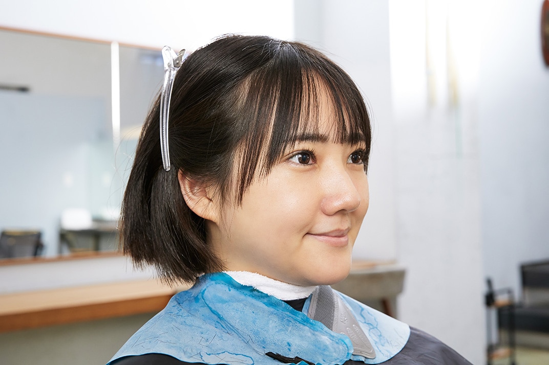 彼女は今の髪型を全否定していたんです。でも、ベースは彼女の顔立ちに似合っているので、部分的な改善で絶対に満足させられる自信がありました。そのために改善点を1つ1つつぶしていく作業に。結果的にとてもいい感じに仕上がったと思います。