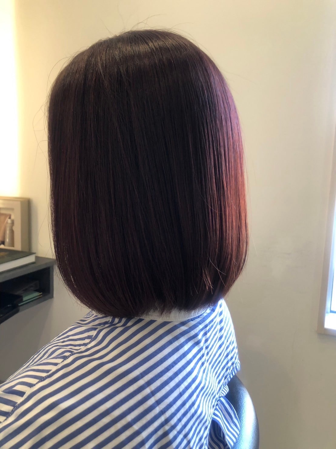 中明度のアッシュブラウンをワンタッチでカラー。赤みをおさえているので透明感がありながら大人っぽさを表現しています。