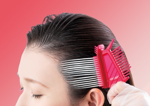 髪を分け取りながら根元に塗りやすいラク分けコームで、細かい根元や生え際がしっかり染まります!