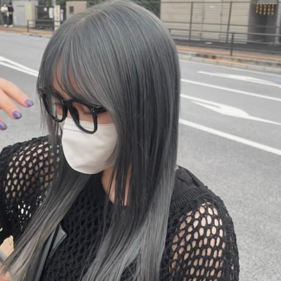 透明感あふれるシルバーのハイトーンカラー。色落ち後は寒色の色みが抜け、ブロンドを楽しむことができます。