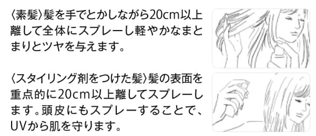 頭皮にもスプレーすることで、UVから肌を守ります。