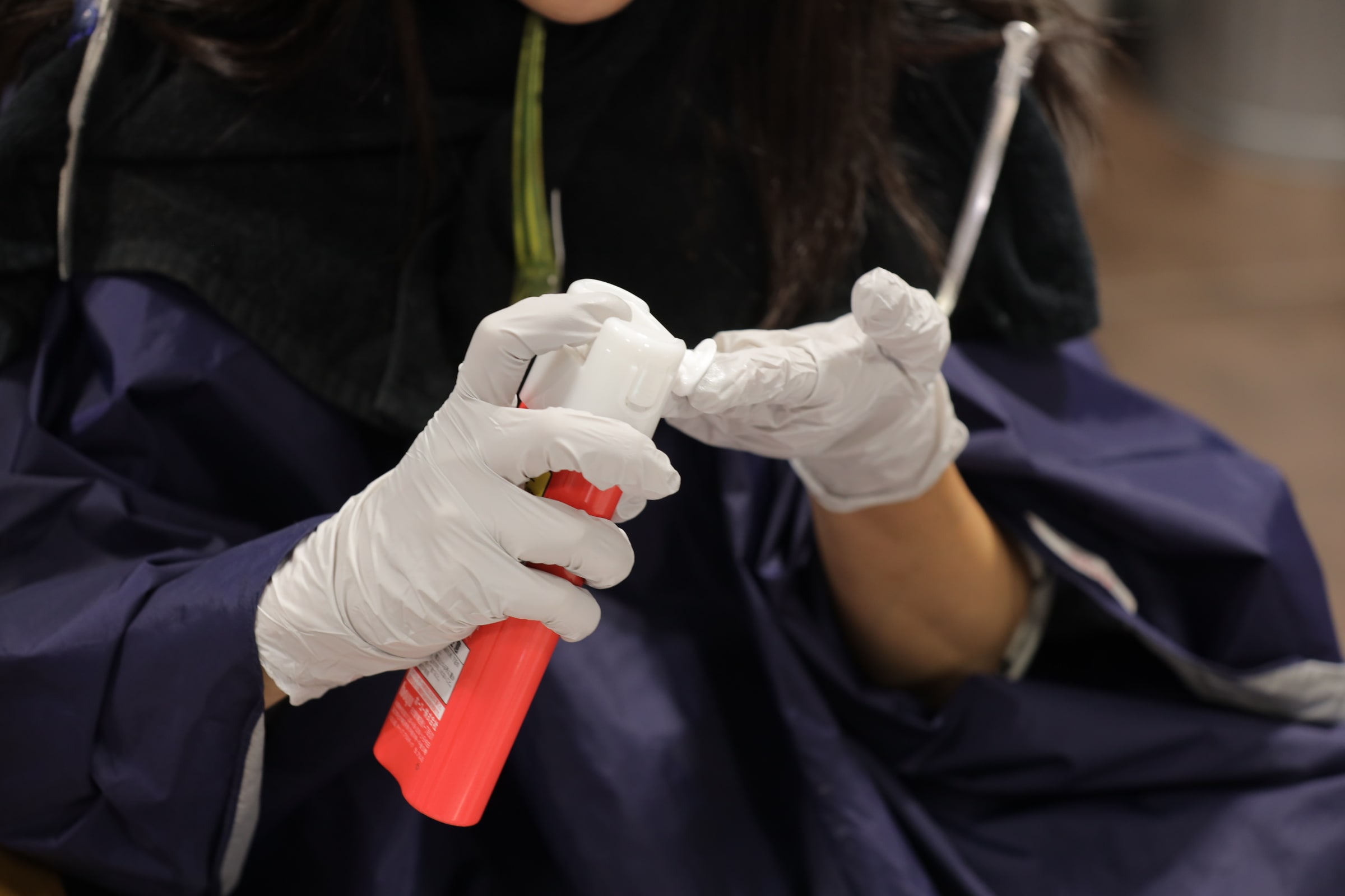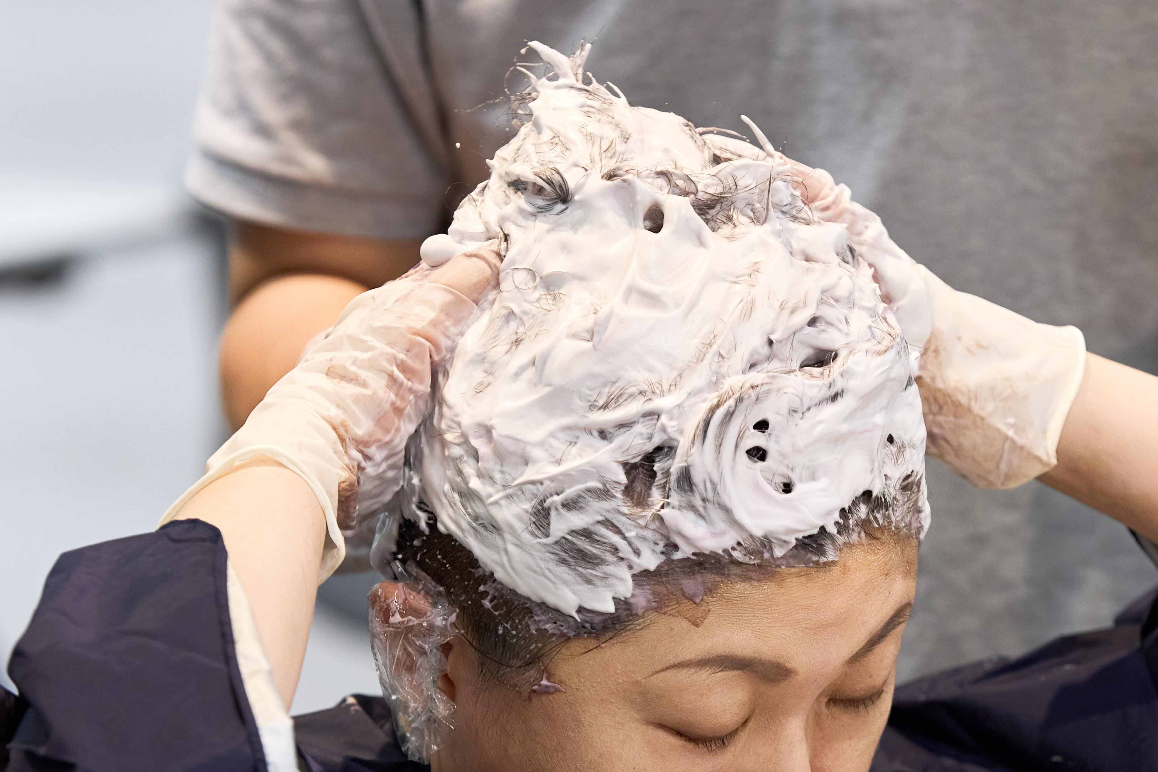 体験会では、泡タイプのセルフカラーによる全体染めと、クリームタイプのセルフカラーによるリタッチ染めを体験いただきました。