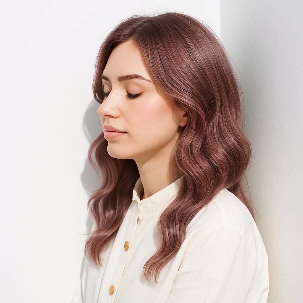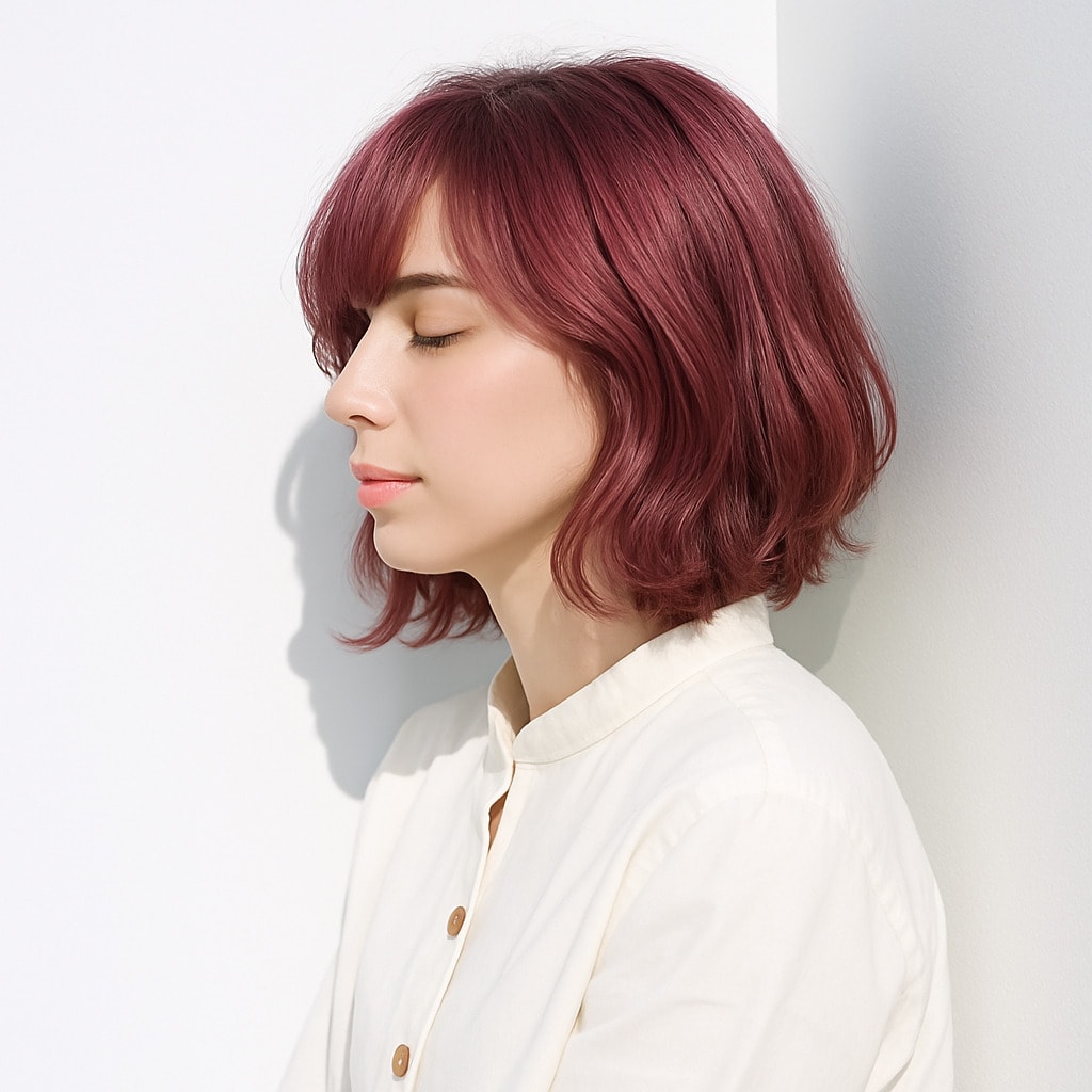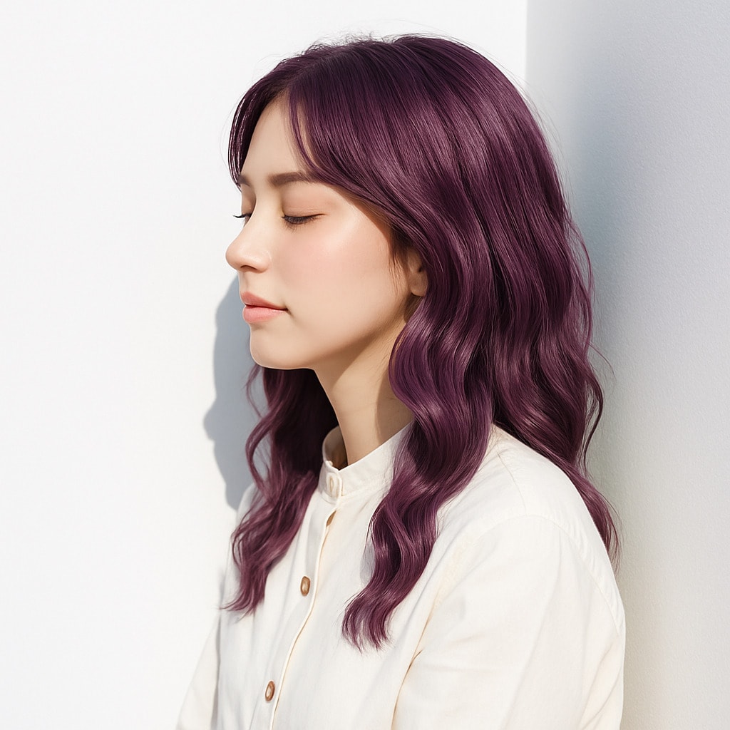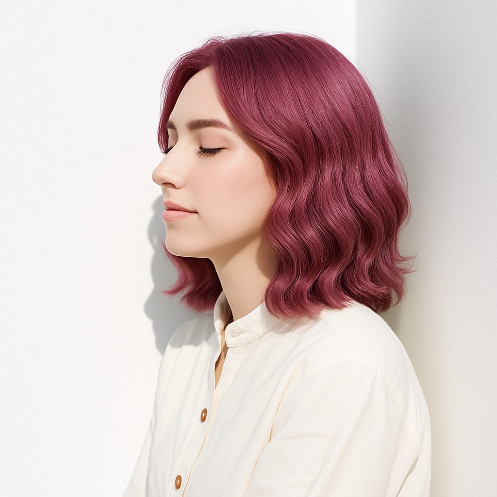 ワインレッドのような深みピンクに、ほのかにラベンダーを溶かし込んだディープピンクラベンダー。光が当たると濡れ感のあるツヤがふわっと浮かび、しっとりまとまった質感が際立ちます。