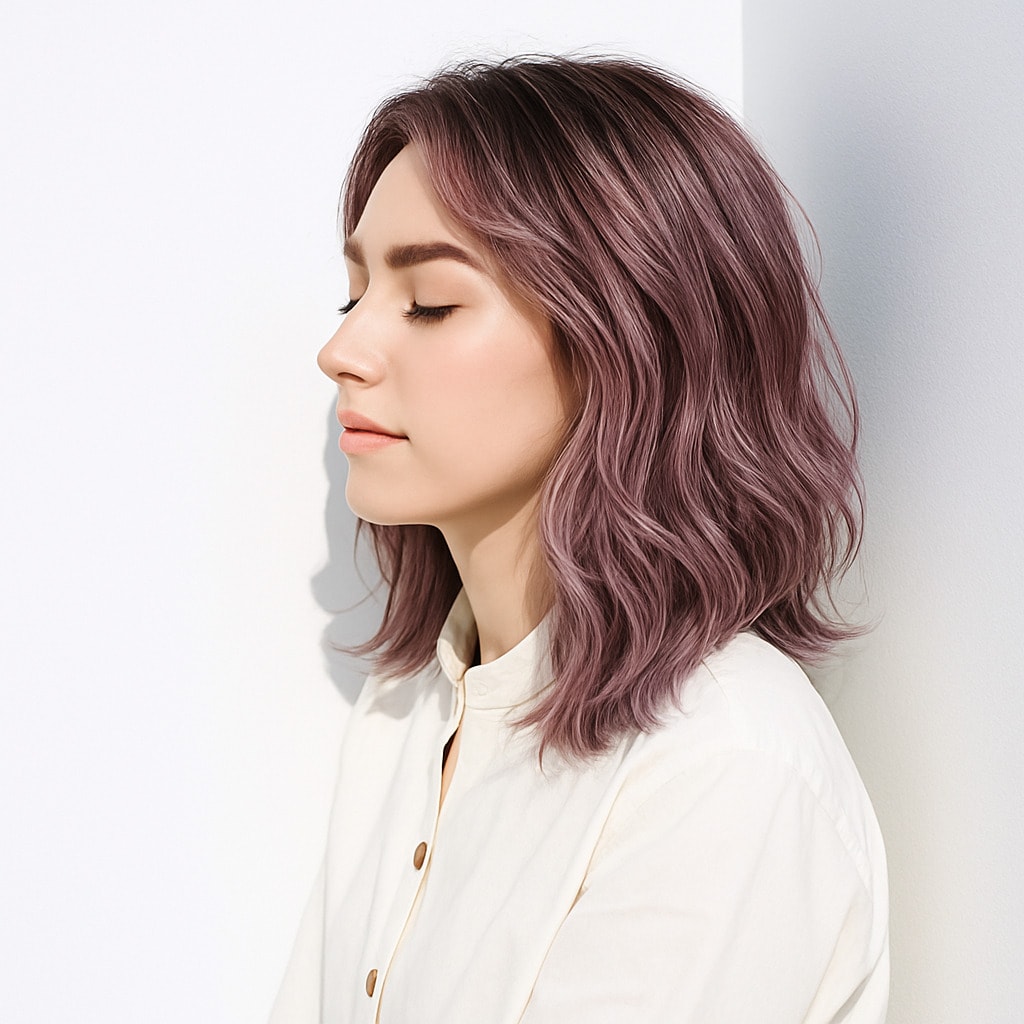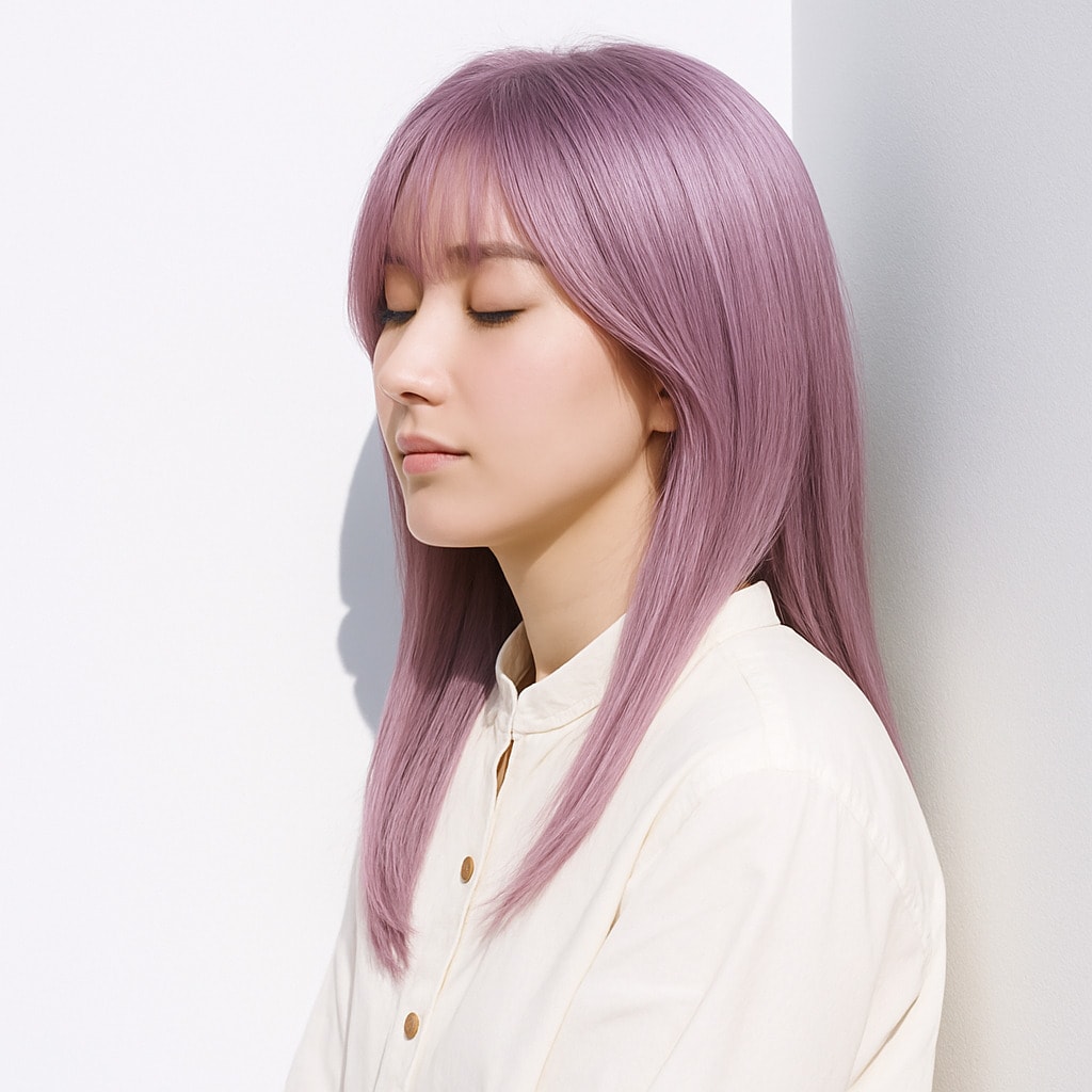 20. ピンクラベンダー×明るめ:淡いモーブが揺れる、セルフィー映えする髪色