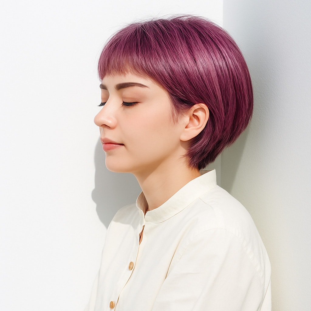 13. ピンクラベンダー×ショートボブ:光を受けてふんわりとした印象に