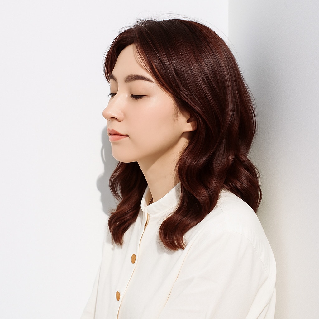 光に当たるたび、やわらかなツヤと透明感が生まれ、髪自体がほんのり発光しているように見えます。