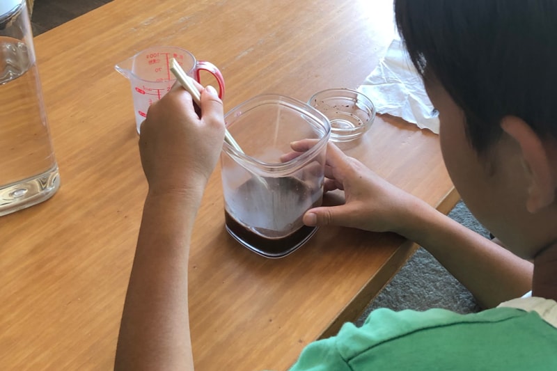 *お子さんが実験をする際は、保護者の方が一緒に行ってください。お湯や洗剤を扱う際は、お子さんから目を離さないでください。コーヒーやココアで着衣や室内を汚さないよう、十分ご注意ください。