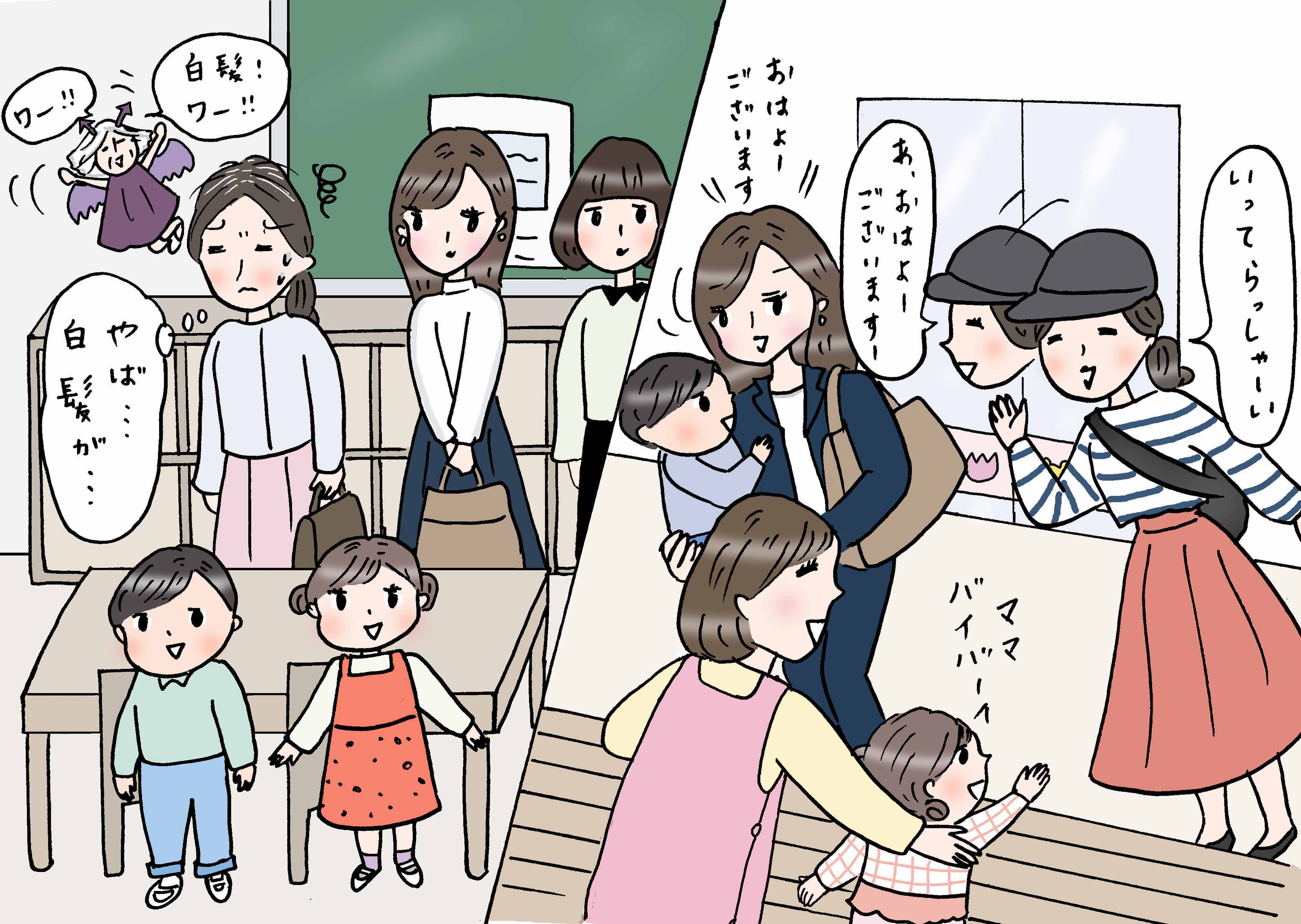 毎日の送り迎えは帽子をかぶれば隠せるので、しばらくカラーをさぼっていました。保育参観があるのは2カ月前からわかっていたのですが、屋外での様子を見るということだったのでわからないだろうと思っていたんです。