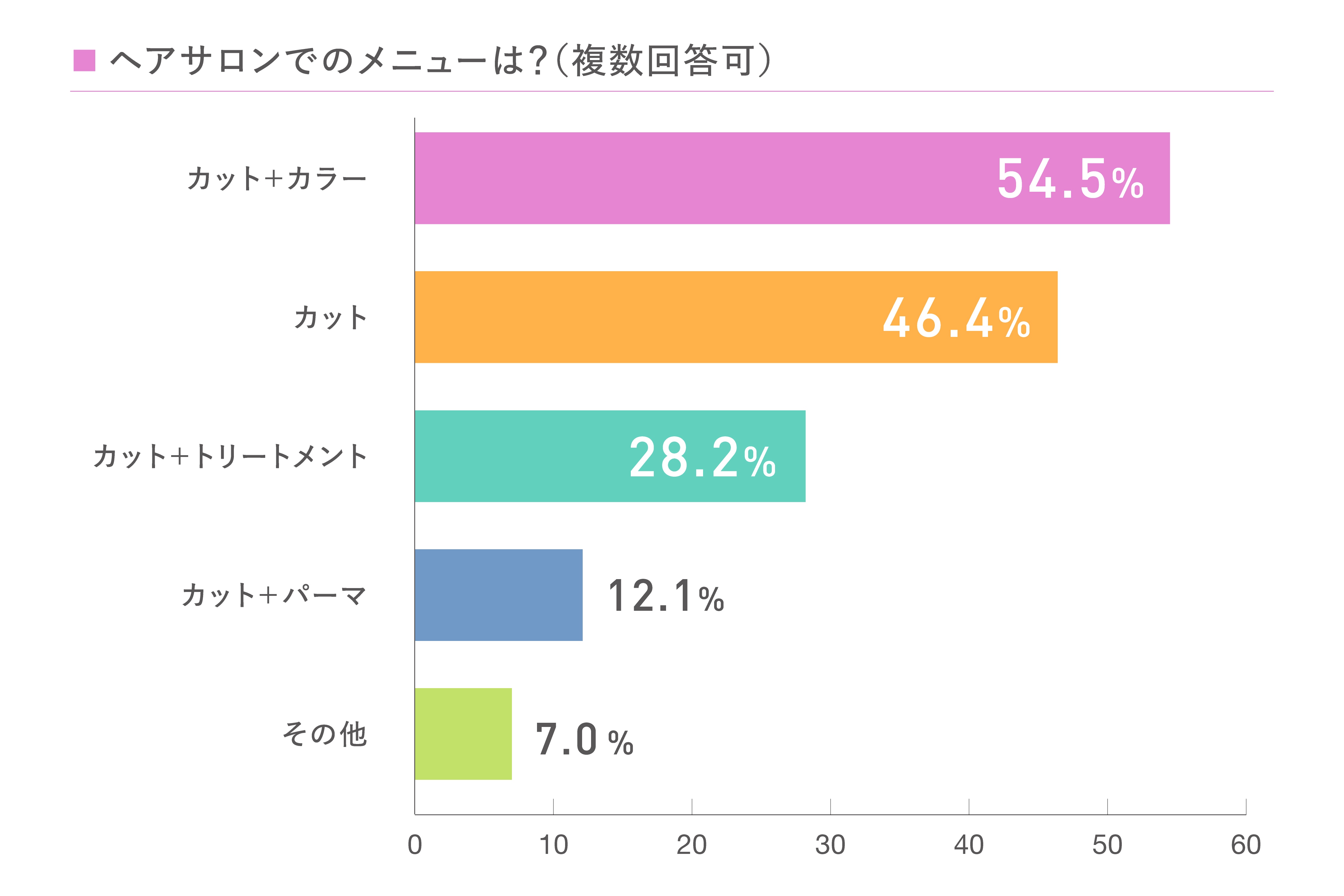 メニューは約半数がカットのみで、髪の状態に合わせてカラーやトリートメントをプラスするという結果に。