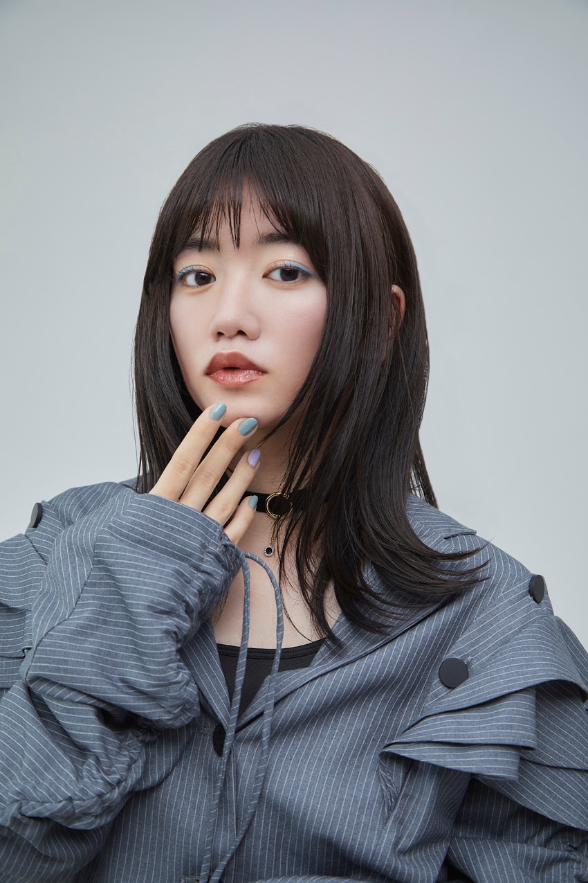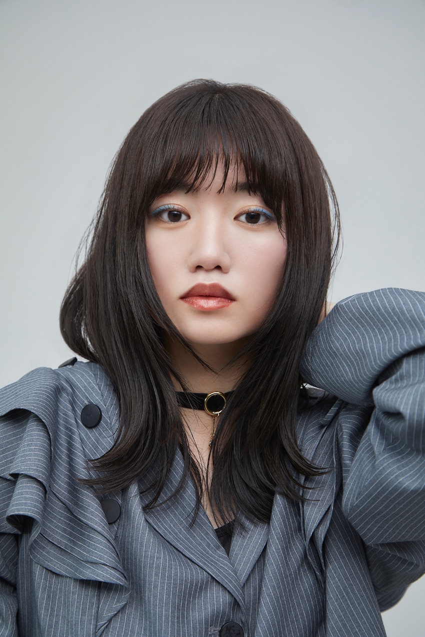 前髪は適度な束感を与えることでさり気ない清涼感を感じさせ、ほんのりウェットな質感と暗髪のグレージュカラーとの相性も抜群です。