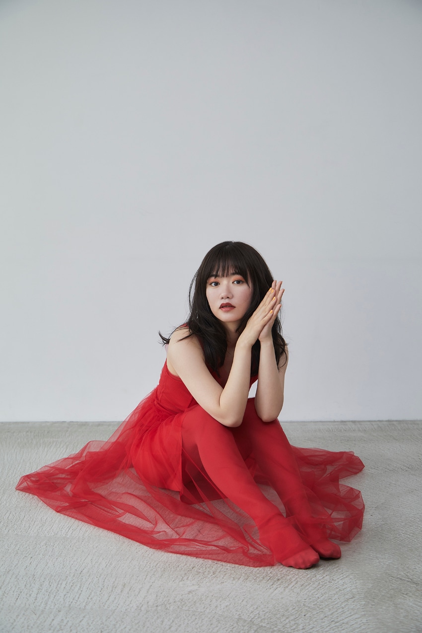 アイシャドウとリップは真紅のワンピースと相性の良いコーラル系を選び、フェミニンな印象に。厚塗り感を避けるため、ベースはファンデーションを使わずコンシーラー&パウダーのみ。ポイントは黒のリキッドを使ってキュっと引き締めた目元のインライン。全体的にニュートラルな雰囲気を持たせつつ、強さを感じさせる仕上がりに。
