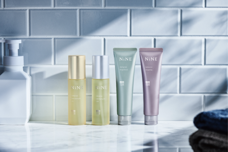 サロン品質のスタイリングケアブランド「NiNE(ナイン)」。ベタつきのない軽やかなツヤ感や細かい束感を持続させ、肌にも使えるオイルタイプと、保湿しながらスタイリングし、セミウェットな質感を演出するクリームタイプを展開。