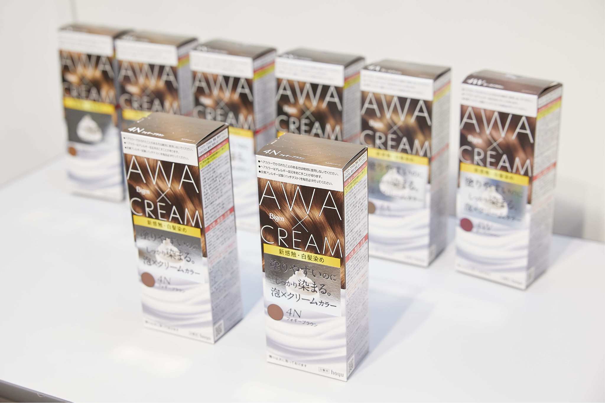 A. 「ビゲン 泡クリームカラー」はクリームと泡が同時に出てくる新剤型です。クリームと泡をハイブリッドすることで、「泡」の浸透力と「クリーム」の密着力を併せ持つ新感触の泡クリームを実現しています。そのため、泡の塗りやすさはそのままに、使いやすく、キレイに染めることができます。