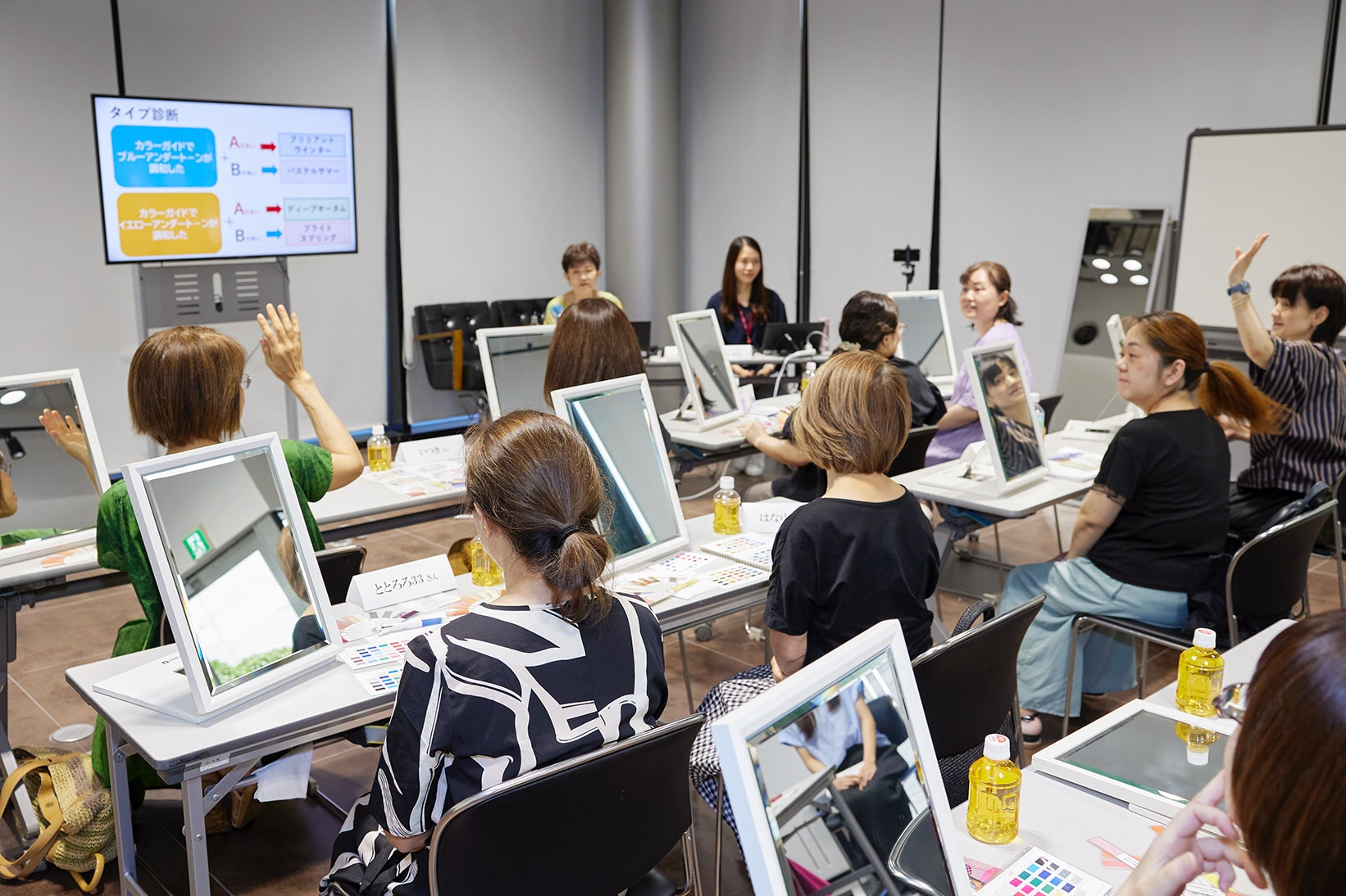 昨年12月と今年の4月に開催した大人気パーソナルカラーセミナー。その第3弾を8月24日(木)に新宿のホーユースタジオ東京にて開催し、12名の方々が参加されました。