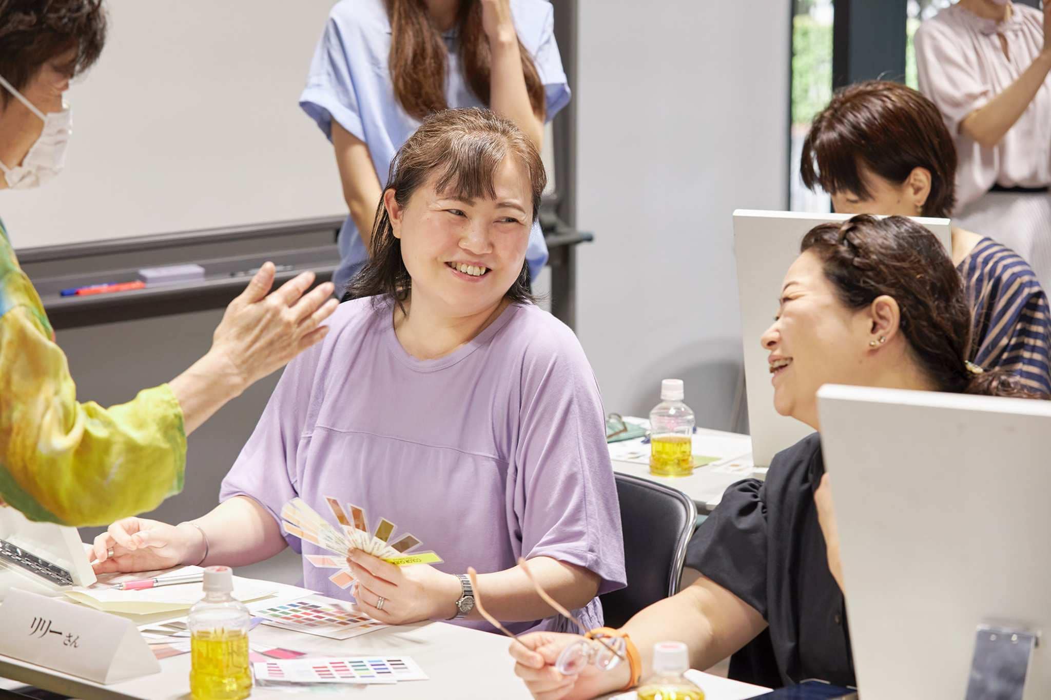 そのあと小木先生が参加者の席を回り、ひとりひとりのパーソナルカラーを診断していきました。