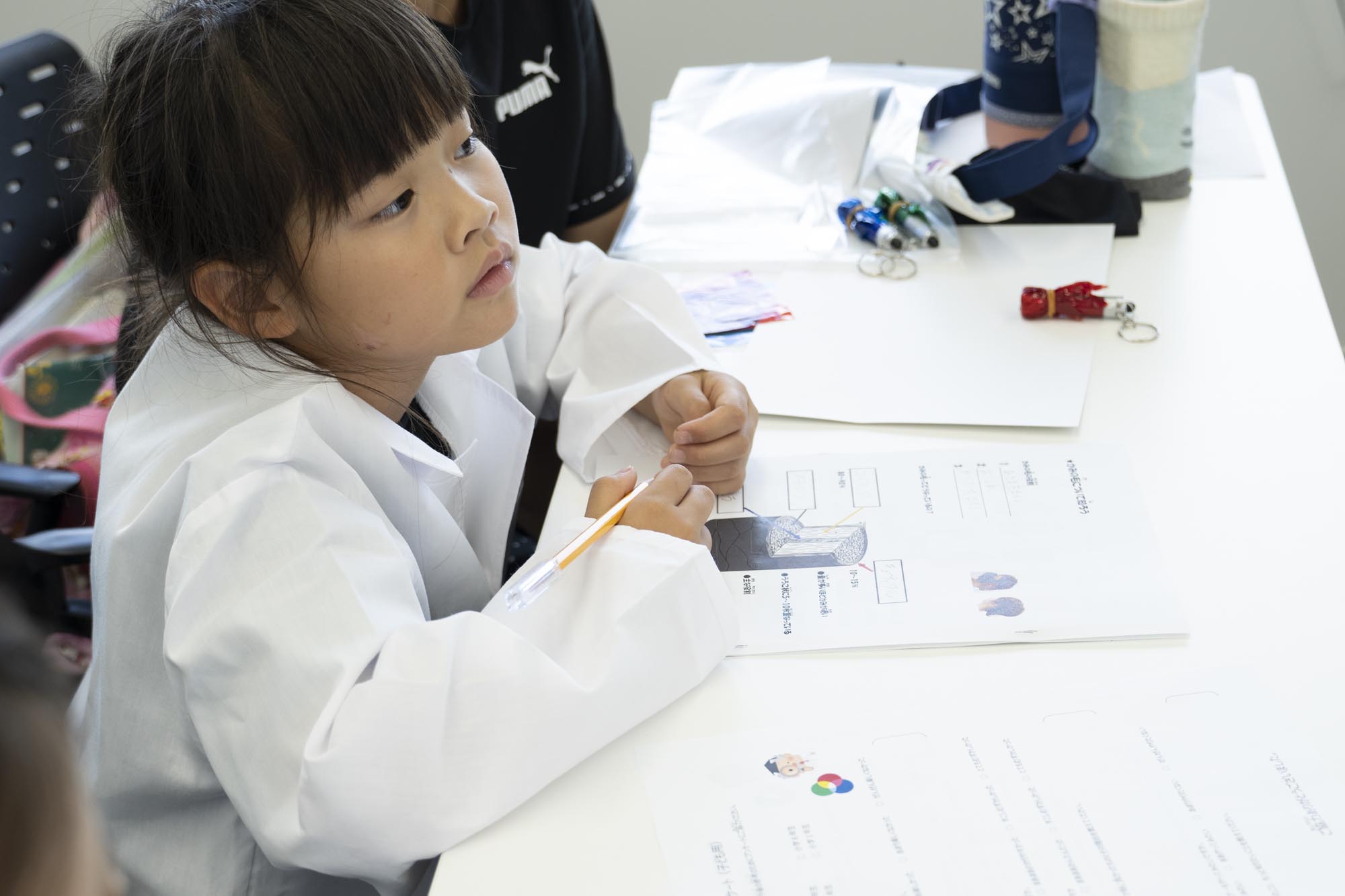 今回の「色遊びと毛髪診断」は、8月25日(金)に開催。地域の4組の親子の皆様に集まっていただき、ホーユーの研究員が企画した「色遊びと毛髪診断」を楽しんでいただきました!