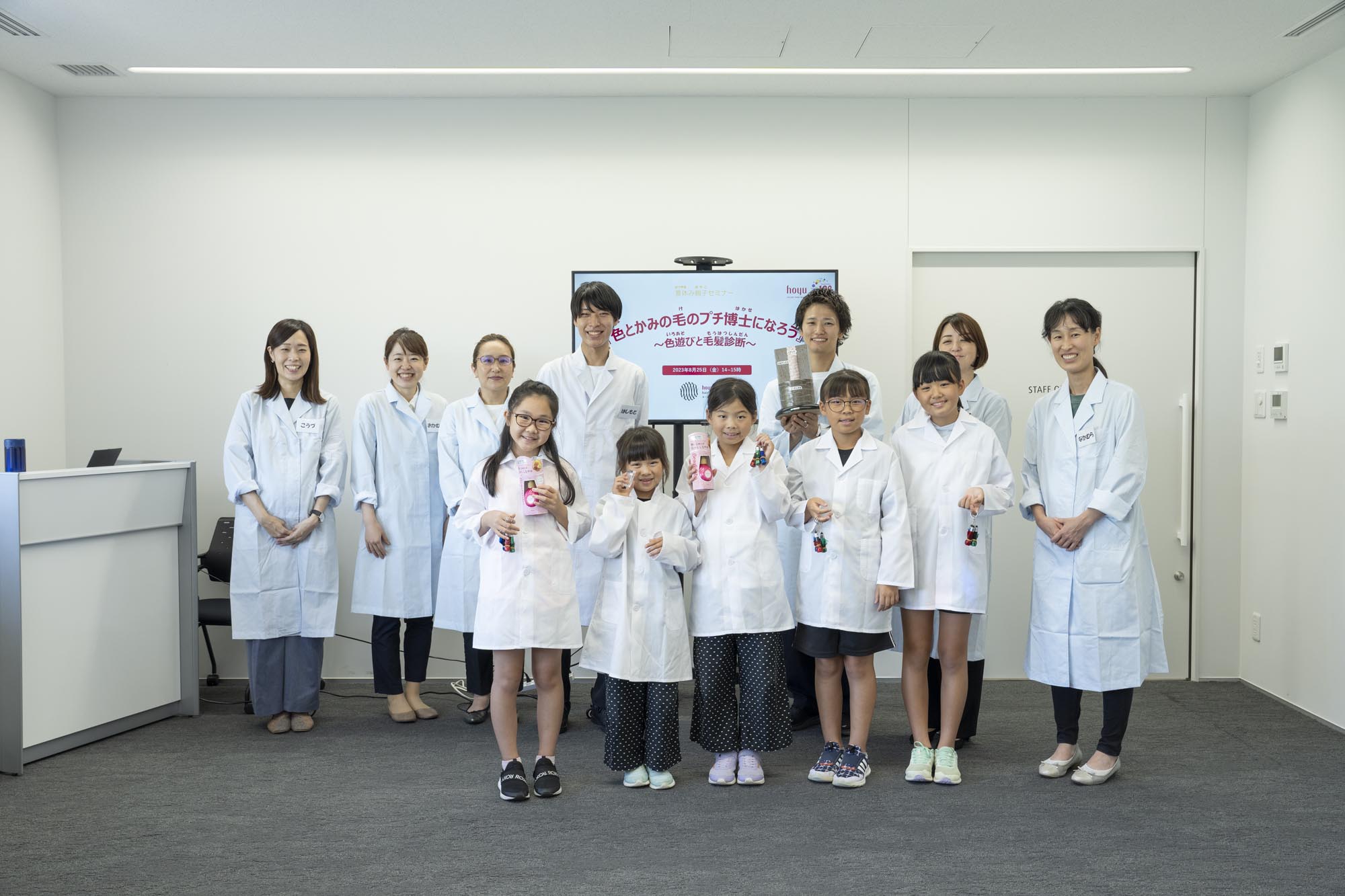 この企画は、“子どもたちに科学への興味を持ってもらいたい”、“髪の毛のお手入れの大切さを知ってもらいたい”というホーユー研究員の想いからはじまりました。