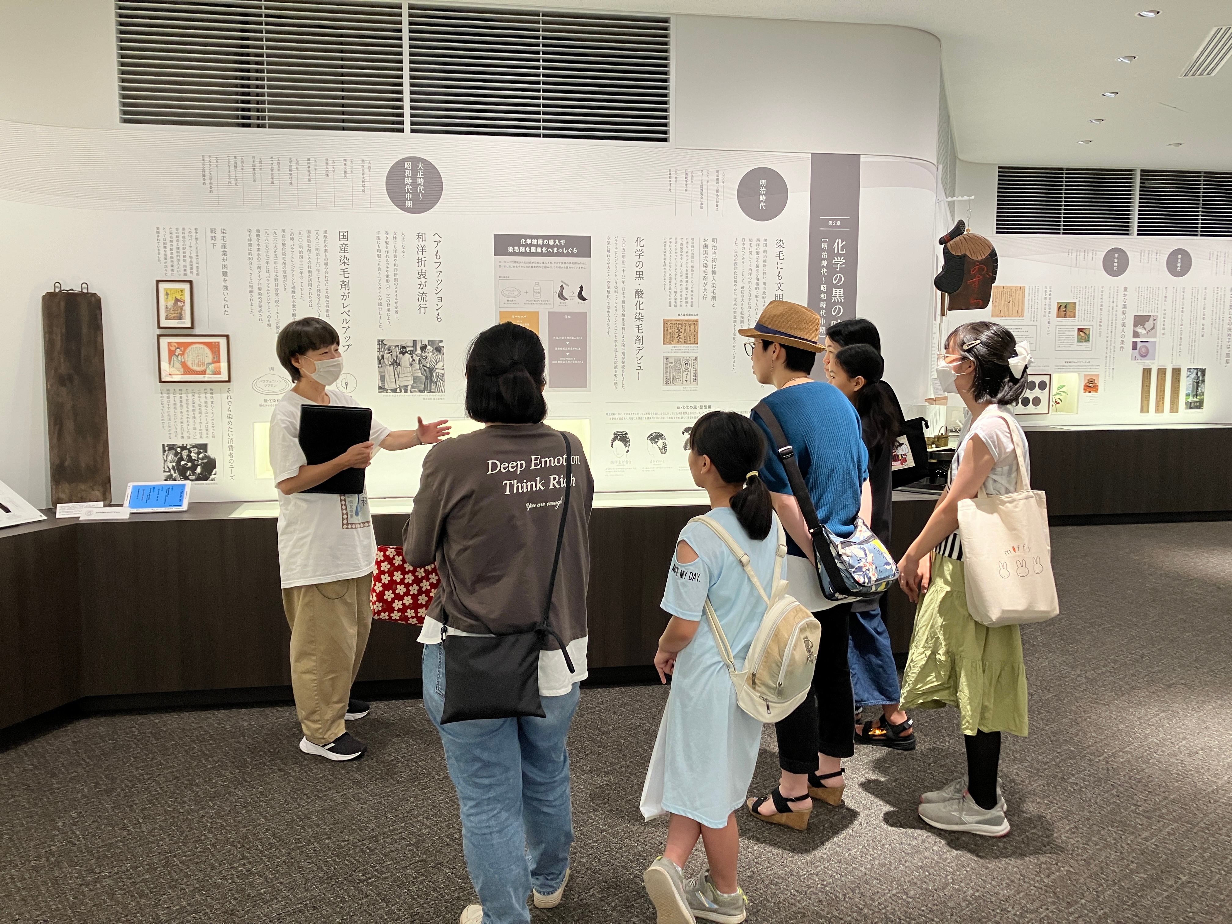 親子セミナーのあとは会場であるホーユーヘアカラーミュージアムの館内を見学いただきました。ヘアカラーの歴史、品質への想い、体験できるシミュレーター等、ヘアカラーの世界を深くお届けします。みなさん新たな発見があったようで、見学ツアーは参加者さん同士で毎回盛り上がっていました。