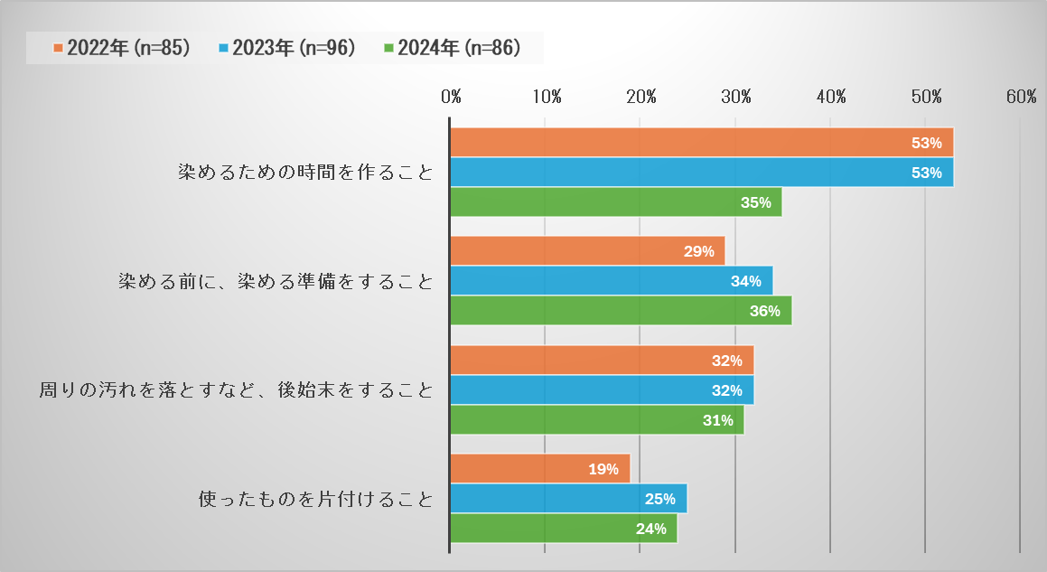 図1:ヘアカラーの中止/休止理由 (ホーユー 2022~2024年女性ベンチマーク調査)