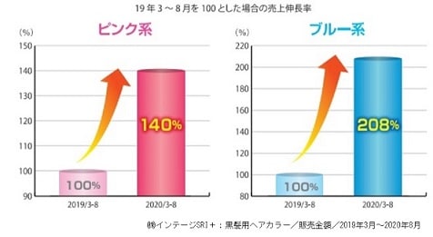 黒髪用市販品ヘアカラー市場でもあざやかな色が人気で、売上は大幅拡大!