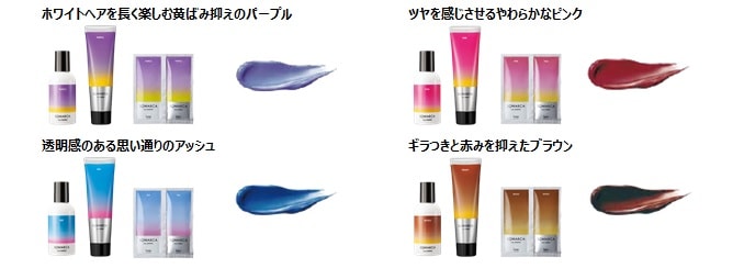 「SOMARCA」は2019年6月に誕生し、 『アッシュ』 『パープル』『ピンク』『ブラウン』の4色を展開しておりますが、暖色カラーへの人気の高まりを受け、『オレンジ』が新たに加わりました。ハイトーンから中間色の方まで幅広い髪色で楽しんでいただけるよう、くすみを抑えた鮮やかな色味を実現。