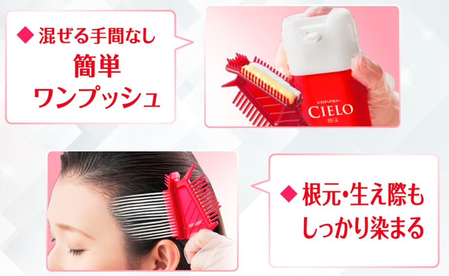 ・混ぜる手間なし簡単ワンプッシュ。根元・生え際もしっかり染まる
