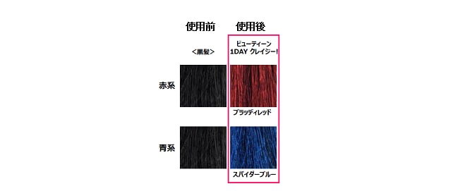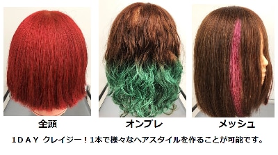 普段からヘアカラーを楽しんでいる方にはもちろん、シャンプーで落とせる1DAYタイプなので、まだ髪の毛を染めたことが無い髪色オシャレ初心者の方たちにも手軽に個性的で派手な髪色を楽しむことができます。