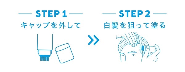 キャップを外して、白髪を狙って塗るだけで白髪をサッと隠せます。