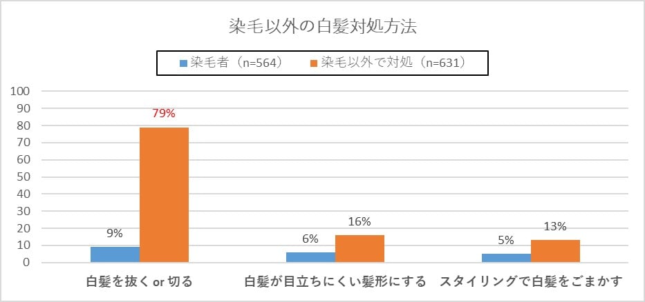 白髪染め以外で白髪を対処している男性の約80%が、「抜く/切る」対処をしている点に着目。
