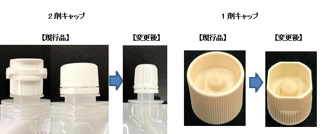 また、ヘアカラー1剤キャップのキャップ縮小にも取り組んでおり、プロ用ヘアカラー製品のメインブランドである「プロマスター」をはじめとする主要15ブランドで実施します。この変更によりプロ用ヘアカラー1剤キャップについて約45%、2022年中には削減量として年間約12.3tを見込んでおります。何れのキャップも、従来の使用感を損ねることなく使用できることを確認しており、既に昨年10月から小ロット製品より順次切り替えを図っております。