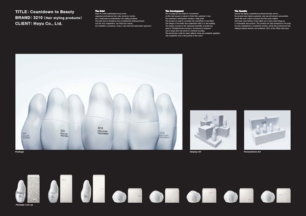 サロン用のスタイリング剤-『3210 (ミニーレ) 』フィニッシュワークシリーズが、世界三大広告賞のひとつ"One Show" の権威あるデザイン部門「One Show Design」の「パッケージデザインキャンペーン」のカテゴリーで、シルバーペンシルを受賞しました (2010年5月10日)。