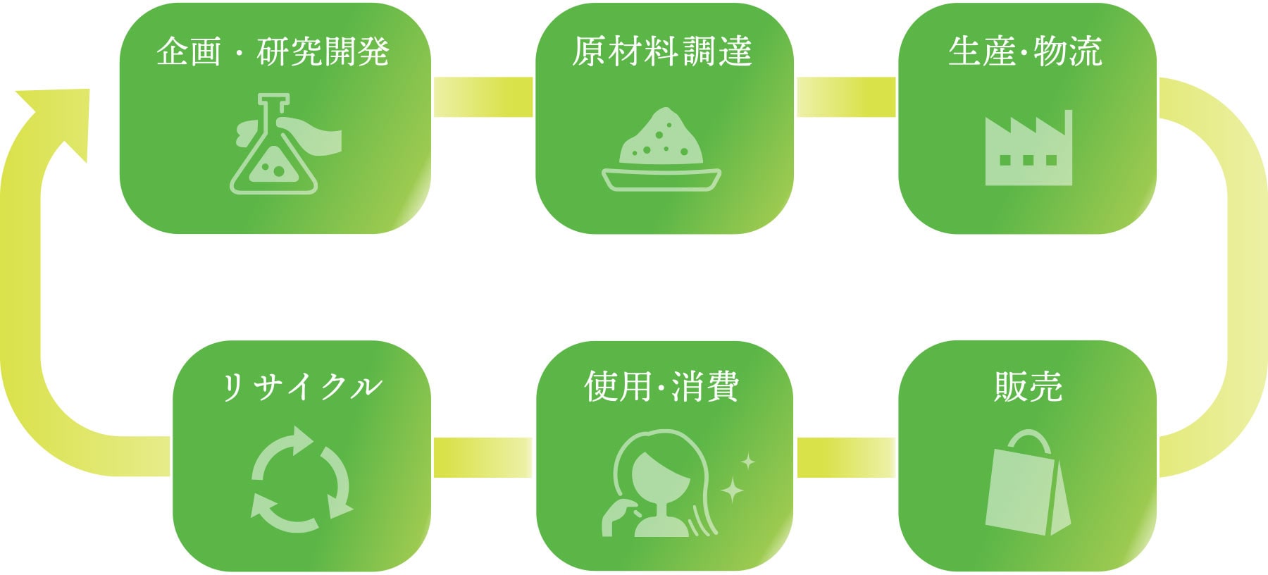 世界中のお客様の心を彩り、イキイキ・ワクワクと美しい人生を送るためのお手伝いをしていくには、私たちを取り巻く社会、さらには地球環境のイキイキ・ワクワクを妨げてはならない。それが「グローバル社会の一員」としての心構えです。地球環境を一気に好転させるような手段を、残念ながら私たちは持ち合わせていません。ですから私たちは、「誠実な活動」を貫き、活動の輪を広げていきます。